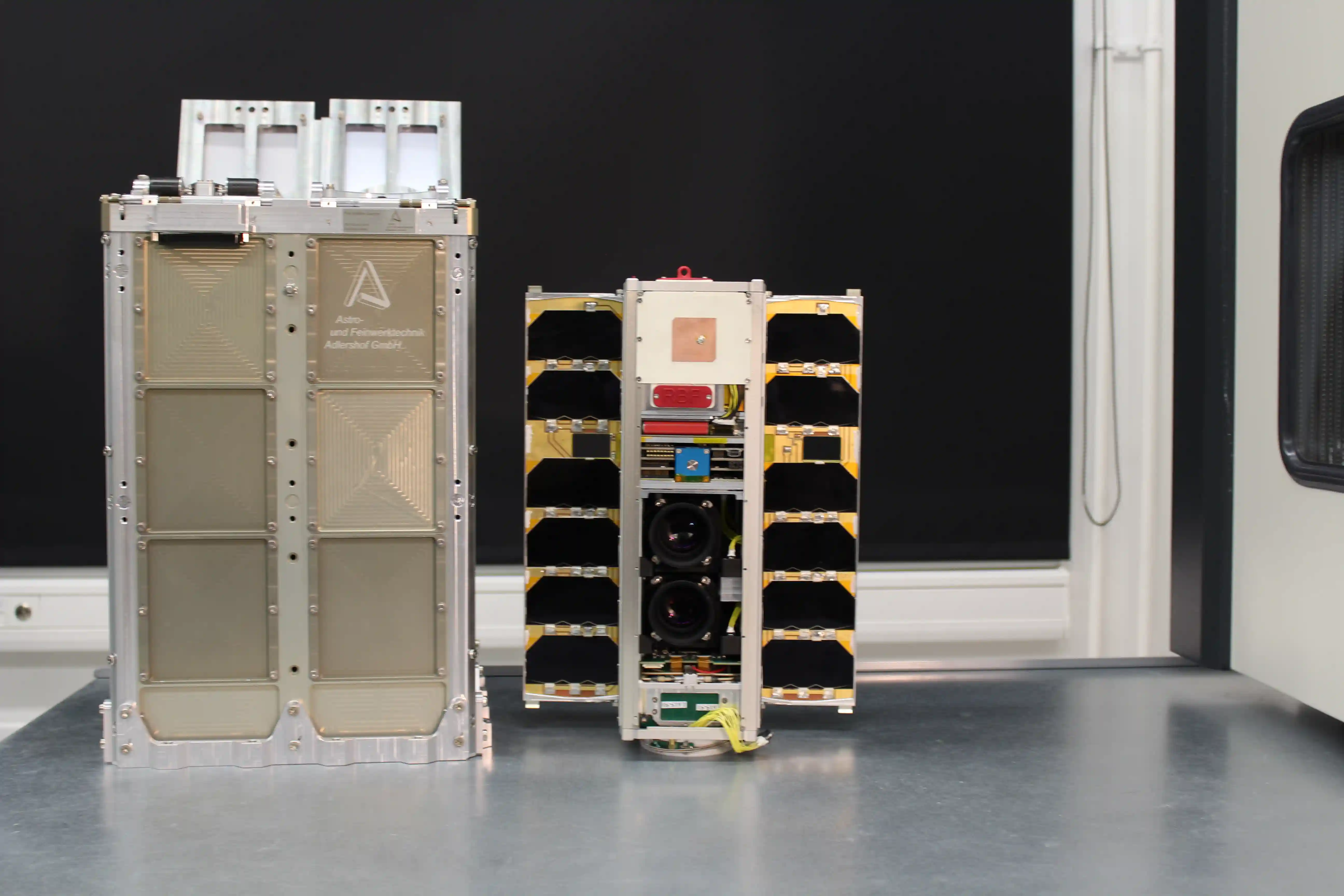 ESTCube-2 oma stradikapsli kõrval. Foto: Kristo Allaje