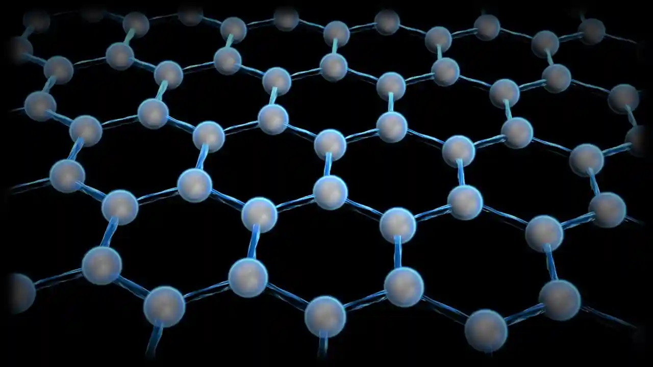 Illustratsioon ühe aatomkihi paksusest tulevikumaterjalist grafeen, mille korrosiooni kosmoses uuritakse. Illustratsioon: Maido Merisalu
