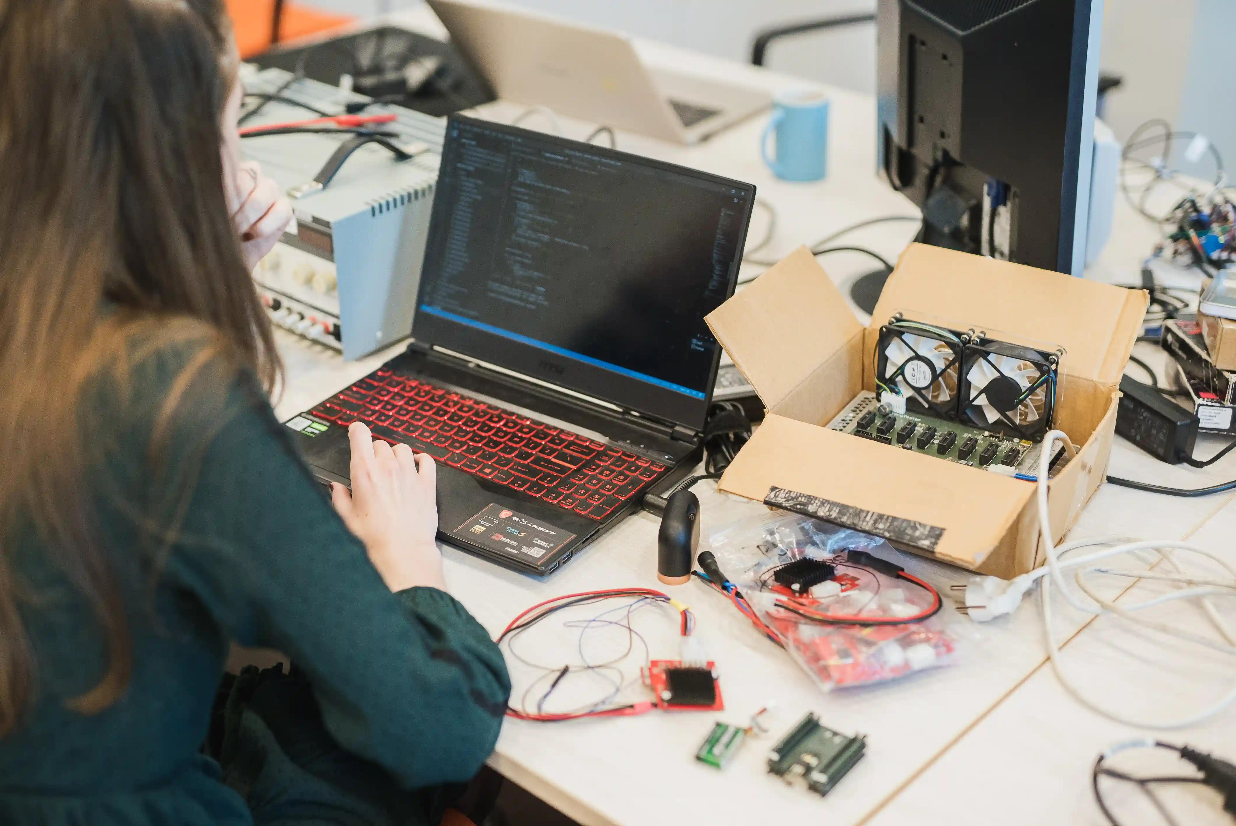 ESTCube insener töötab tarkvara kallal. Foto: Laila KaasikSamuti oleme tegelenud andmevahetuse parandamisega satelliidi ja maajaama vahel. Materjal ESTCube-2 kiirside-antennide jaoks on tellitud ja meeskonnale ka tarnitud. See võimaldab meil toota ja katsetada erinevaid antenni konfiguratsioone, et teha kindlaks, milline on meie kiire kommunikatsiooni-allalingi mooduli jaoks parim sobivus. Ideaalne konfiguratsioon ja antenni sobivus võimaldavad meil vastu võtta kõrge kvaliteediga ja suuri pilte Maast, mis on tehtud orbiidilt.